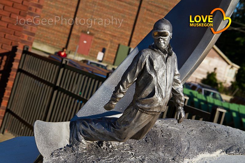 Jason created the limited edition snowboard bronze sculpture, “The Turning Point”, to capture the memories of snowboarding with his younger brother, Jeremy. He had no inkling that his piece would become recognized by many avid snowboarders, and that the fourteen-foot sculpture would one day be placed in the heart of Muskegon, Michigan to honor the inventor of snowboarding, Sherman Poppen who had lived there for many years. Sherman created the first snowboard, the “Snurfer”, by tying together two skies to entertain his young daughters. That is how a great sport was born. Having his piece displayed near the Sports Hall of Fame in the town known as the birthplace of snowboarding is an remarkable honor, but to Jason this piece will always be personal and close to his heart.